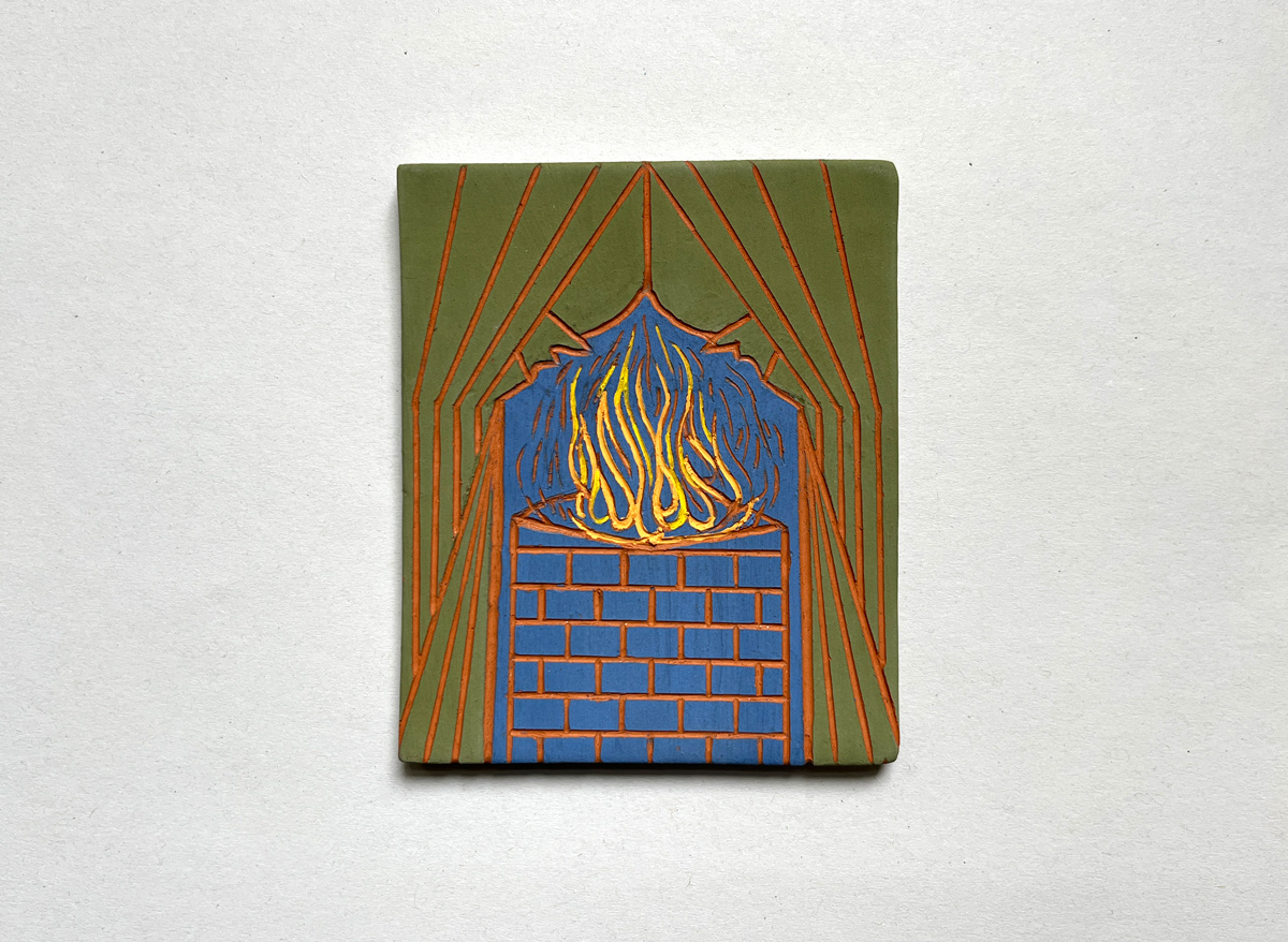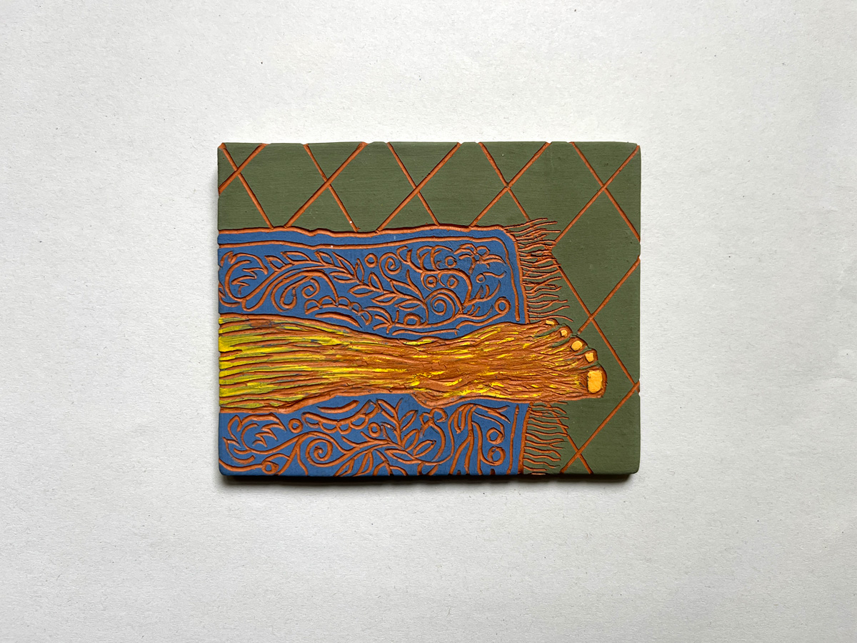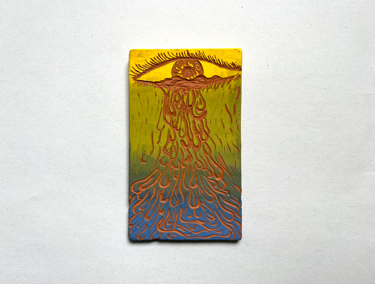 Mini version of the door i made for Study of a Search, opening to a diffrent universe.Sgraffito ceramicsMade in the occasion of Villa Lena Residency 2024 Inspired by old Farsi proverb: پاشو از گلیمش درازتر کرده