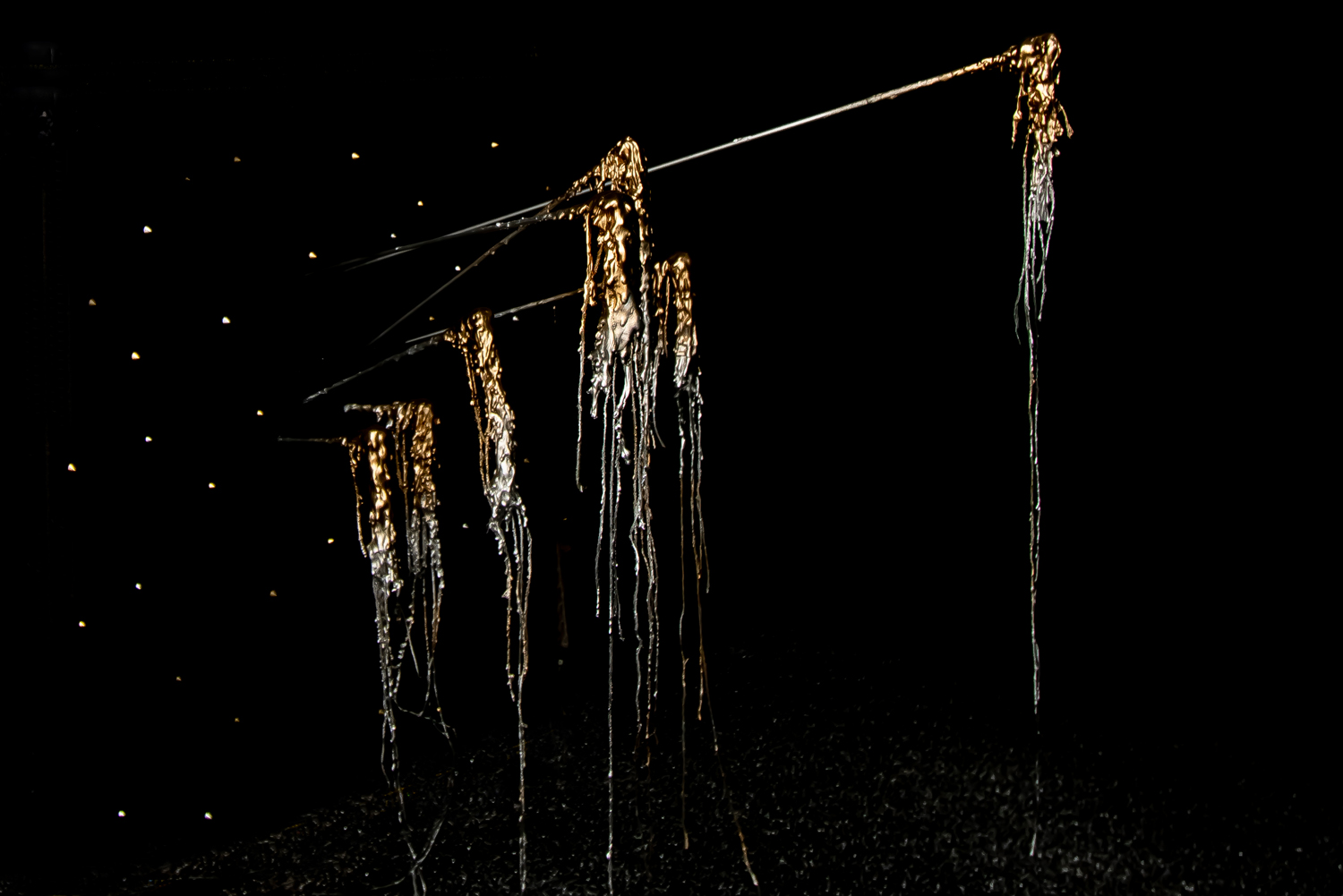 As the subwoofer generates vibrations, sound travels through the air and moves the waxy rods creating corresponding movements based on the sound’s frequency and infinite possibilities due to the subtle changes in the rods.