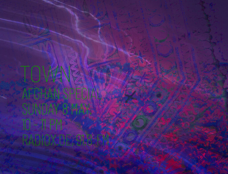 This month Town will embrace the limitless musical voyages of Afghanistan. Join me on Sunday at 10 pm on Radio x for one hour selection of different music styles from Afghan psych and noise to pop and folk music from various cassette collections.